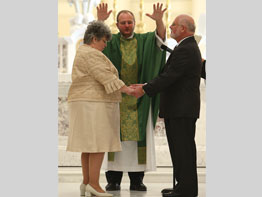 Everyone at the 12:10 p.m. Mass applauded the newly remarried bride and groom, and they received Holy Communion together.