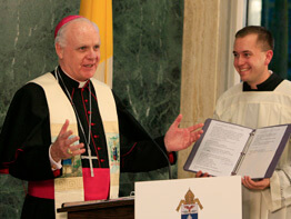 Among the guests at the dedication were Cardinal William W. Baum, a former Vatican official and former archbishop of Washington; Archbishop Pietro Sambi, apostolic nuncio to the United States; Archbishop Donald W. Wuerl of Washington; and Jim Nicholson, the former U.S. ambassador to the Vatican who was to step down Oct. 1 as U.S. secretary for veterans affairs.