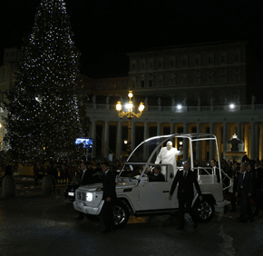 After the prayer service, Pope Francis was scheduled to travel by car to St. Peter’s Square to get a close look at the Nativity scene.