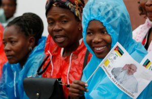 Wearing a headwrap and a skirt made of blue fabric with the pope’s image, she told Catholic News Service that the pope “can help stop the violence, first of all because he unites people. His words about reconciliation are very important for our people.”