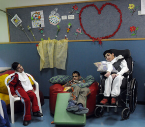 Behind the physical therapy room – basically a gymnasium filled with padded mats, colorful balls and assorted equipment – Sister Jarjour points to the site of her big dream: an undeveloped part of the garden where she longs to see a swimming pool for water therapy and splashing fun.