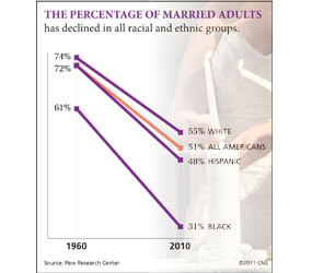 WASHINGTON – With cohabitation, single-person households and single parenthood on the rise, the percentage of Americans who are currently married has reached an all-time low.Read More