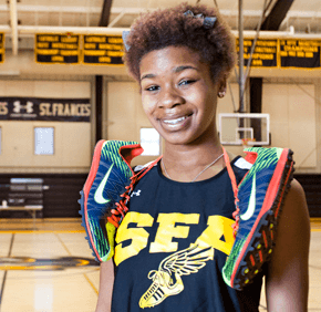 When Karimah Crum is not running on a track, the St. Frances Academy junior is still on the move.