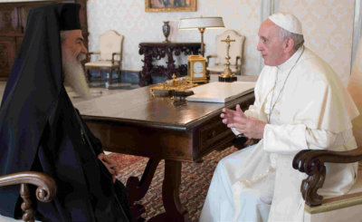 As minorities living in a troubled land, Christians in the Holy Land must forgive each other for past mistakes and work together for the future of their communities, Pope Francis told the Greek Orthodox patriarch of Jerusalem.Read More