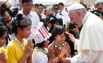 Greeted by two dozen children wearing traditional attire and by the nation's bishops, Pope Francis arrived in Myanmar Nov. 27 for a four-day visit.Read More