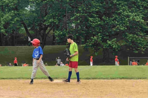 Our little leaguer is a southpaw, but the rest of us were right-handed. And our older son wanted to play in the scrimmage. So I let him represent our family, and I took pictures—which is something I do a little better at than baseball.
