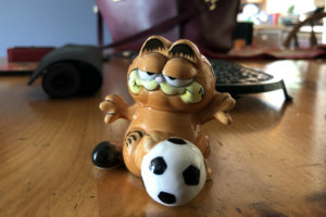 When we arrived home with our purchases, John didn’t say much about them, but I know he was impressed that the Garfield statue only set us back 25 cents.
