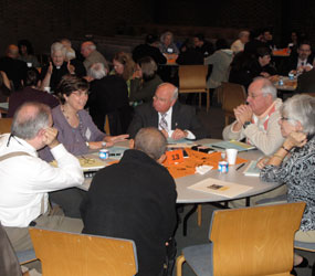 Mary Ellen Russell, executive director of the Maryland Catholic Conference, addressed attendees about the November 2012 referendum to overturn the Dream Act. The law would allow illegal immigrants to receive in-state college tuition after attending high school in Maryland for three years, during which they or their parents have paid taxes during those years. The students must first apply to community colleges.