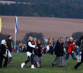 “I think the pope is coming here to meet the base of the church community. He wants to meet the very simple people, people who have remained faithful in a very traditional way,” said Doris Binder, a 55-year-old Catholic who sat on a hillside next to the sanctuary.