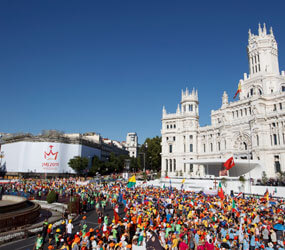MADRID – A cloudless blue sky turned to inky night as hundreds of thousands of pilgrims participated in the opening Mass for World Youth Day, celebrated by Madrid Cardinal Antonio Rouco Varela in the Plaza de Cibeles.
