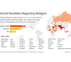 The report, “Rising Restrictions on Religion,” noted that such limitations are on the upswing in only 23 of the world’s 198 nations, and that many of those countries are among the world’s most populous and fastest-growing in population, affecting a higher percentage of the world’s residents.