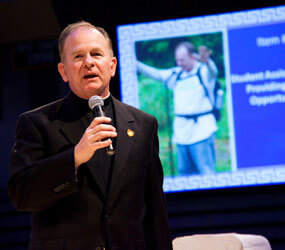 At Jesuit High since 2004, he has served as superior of the Jesuit community, teacher of freshman and sophomore theology, assistant coach of the junior varsity softball team, campus ministry assistant, member of the school’s board of trustees, chaplain to athletic teams and director of freshman retreats – where he is known for his guitar playing around the campfire.