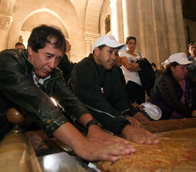 The miners received an equally warm welcome from shopkeepers and pedestrians in the West Bank city of Bethlehem Feb. 26, as they walked through the market. A representative of the Palestinian Ministry of Tourism greeted them on their arrival and a Chilean Franciscan monk guided them through the Church of the Nativity.
