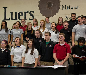 Bishop Luers offers show choir as an accredited course. During the competition season, the Luers show choir enters six to eight competitions and a national competition every other year.