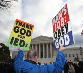 Discussion in the court touched on whether protests can defame someone who’s dead; whether the Snyder family became “public figures,” opening them to the attacks by Westboro because they talked about Matthew Snyder’s death to reporters; and whether the doctrine of “fighting words” would apply. The doctrine, dating from the 1940s, says that First Amendment protections are limited when someone uses “fighting words” to incite violence.
