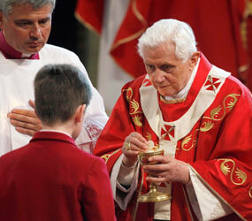 The liturgy at Westminster Cathedral featured Latin and English-language prayers, and was attended by representatives of other Christian churches, including Anglican Archbishop Rowan Williams, who hosted the pope the day before at the Anglican headquarters in London.