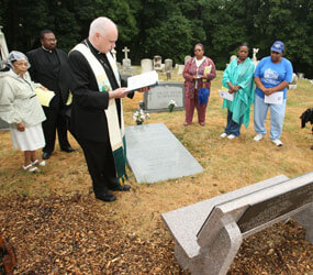 At New Cathedral Cemetery, he blessed a resting bench of meditation at Mother Lange’s grave.