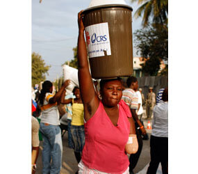 Since the quake hit, CRS has installed over 600 latrines and hand-washing stations, so important in preventing the spread of disease. We have also set up potable water tanks and inflatable water bladders in Port-au-Prince, including the ones at Elucienne’s camp. We now supply an estimated 375,000 gallons of clean water every month.