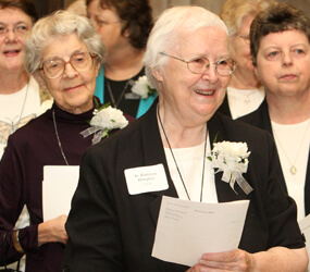 Mercy Sister Paula Marie Phelan is the longest-serving jubilarian, marking her 80th year in religious life. School Sister of Notre Dame Mary Bernarde Auth, Sister of Notre Dame de Namur Claire Corr, Mercy Sister M. Ruth Gerlach and Daughter of Charity Sister Agnes Teresa Meany all celebrated their 75th anniversaries.