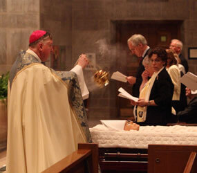 During an evening prayer service led by Bishop Mitchell T. Rozanski, worshippers prayed the Office for the Dead. Archbishop Edwin F. O’Brien, Cardinal William H. Keeler, Bishop Denis J. Madden and Bishop William C. Newman also attended.