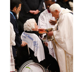 The Mass also marked the 25th anniversary of the institution of the Pontifical Council for Health Care Ministry. Pope Benedict said the council was created to help promote “a world better capable of welcoming and healing the sick as people” whose dignity must be respected.