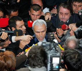 Mehmet Ali Agca, 52, was taken from prison to a military hospital to be assessed for compulsory military service, which is obligatory for all Turkish men. Agca fled the military draft in the 1970s.
