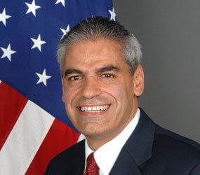 In a brief, invitation-only ceremony in the ornate Benjamin Franklin room at the State Department, Assistant Secretary of State Phil Gordon administered the standard governmental oath of office and supervised as Diaz signed an assortment of official papers.