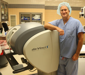 “We place laporoscopic ports into the patient, and insert instruments through the ports,” Dr. Thompson said of technology that incorporates fiberoptics. “You leave the (operating) table and go over to a console, and it’s almost like a video game. You operate everything from there.”