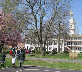 The campus includes a monastery that is connected to the school by a chapel. There is also a separate primary building, a carriage house and a small building used by intermediate grades.