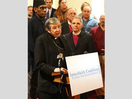 In a Jan. 13 ceremony at First and St. Stephen’s United Church of Christ in Towson, Auxiliary Bishop Denis J. Madden joined dozens of Maryland faith leaders in signing a letter asking state lawmakers to repeal the death penalty – a recommendation urged last month by the Maryland Commission on Capital Punishment.