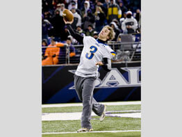 Three Loyola Blakefield, Towson, football players participated in the Baltimore Ravens Toyota Quarterback Challenge during halftime of the Ravens-Redskins game Dec. 7. Dons quarterback Connor Bruns and receivers Ryan Cullen and Vincent Snarski, all juniors, were able to triumph in the competition. Connor ran a 52-yard completion during the event, in which the winner was determined by the longest throw.
