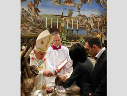 VATICAN CITY – In an annual liturgy, Pope Benedict XVI baptized 13 infants and emphasized the duty of parents and godparents to educate them in the faith.