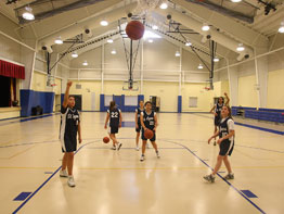 The team marveled at the spacious gymnasium as they tried to concentrate on practice. Their own giddiness was hard to disguise.