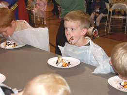 Cub Scout Pack 883, chartered to St. Joseph, Sykesville, held its annual Halloween party and pack meeting Oct. 24 where Cub Scouts received awards they earned for October. The boys participated in a Halloween costume contest and Halloween-themed games, including a Twinkie-eating contest in which the Scouts ate the cakes smothered with whipped cream, sprinkles, and chocolate syrup – without using their hands of course. The winner was Jared Fischer, a Tiger Cub.