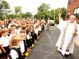 Emotions ran high and reminiscing was plentiful for alumni, former teachers and the school’s 257 students as they joined current faculty and families for the Mass. Afterward, they processed to the school building for a re-dedication by the pastor, Father William F. Franken.