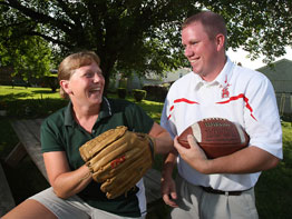 The McBrides play on a co-ed softball team through the Baltimore Sports Social Club. Rob, 30, continues to play football each Sunday.