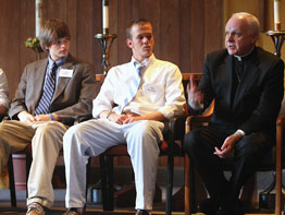 Seated with several teens and young adults who are discerning a call to the priesthood, the Hill brothers listened intently as a college student shared how he just joined the church after years as an agnostic. A priest talked about his love for kayaking while another cleric explained how he found his vocation later in life and joined a religious order.