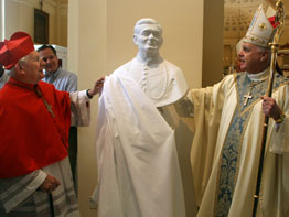 After the celebration, many people admired the 250-pound, life-size bust of Cardinal Keeler. Sculpted by 27-year-old Nate Risteen, the art shows a smiling Cardinal Keeler wearing the pectoral cross of Archbishop Carroll.