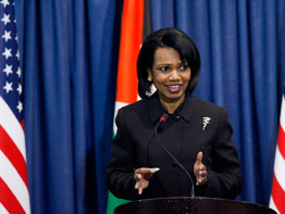 In Ramallah, Rice said that she believed a peace deal between Israel and the Palestinians was still possible this year and urged the two sides to resume talks.