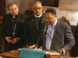 Bishop Madden listented as the Rev. Jackson, the founder and president of the National Rainbow Coalition, urged the 200-plus participants to join him Jan. 22 to march in the nation’s capital in protest of the housing foreclosure crisis.