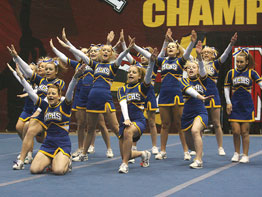 The rigorous first-place routine involved everyone on the squad, performing stunts, two tumbling routines, a high-level gymnastics piece, a cheerleading routine and a dance portion. A very diverse effort from this five-time championship squad has underscored the advancement of cheerleading over the last decade with greater athleticism, endurance and strength as the foundation of a growing sport.