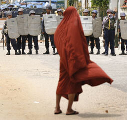 In September, the government cracked down on protests – led by Buddhist monks – against rising prices and corruption. Myanmar is a predominantly Buddhist country.
