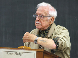 Standing at a podium more than six decades later, the 95-year-old Jewish Holocaust survivor calmly unbuttoned and rolled up his left sleeve to show some 30 students at The John Carroll School in Bel Air the deep purple digits that remain emblazoned on his body and in his soul.