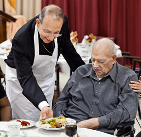 After celebrating Mass, the archbishop helped the sisters serve lunch to the residents of St. Martin’s Home for the Aged, which offers independent living and assisted living for low-income seniors.