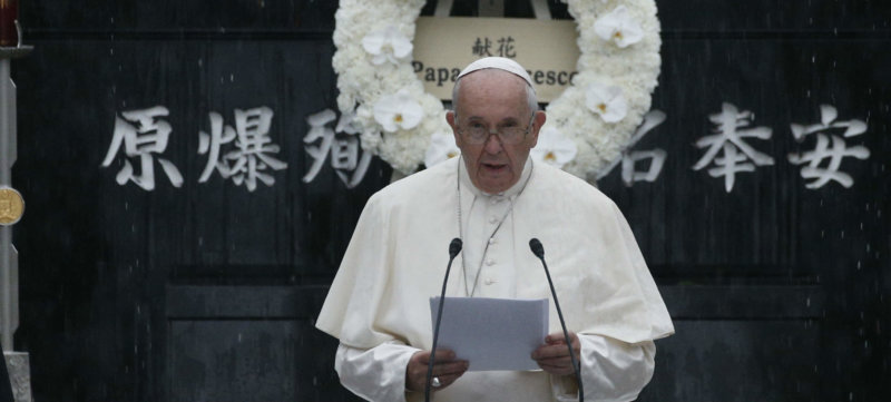 NAGASAKI, Japan (CNS) — Saying it is “perverse” to think the threat of nuclear weapons makes the world safer, Pope Francis urged a renewed commitment to disarmament and to the international treaties designed to limit or eliminate nuclear weapons.