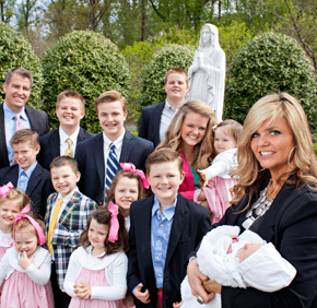 Eileen wakes up early and does a load of laundry before the rest of her family is out of bed. Older children help younger children get ready, and Eileen drives them to St. Mary in their 15-passenger van. Reciting a decade of the rosary keeps them from bickering in the car.