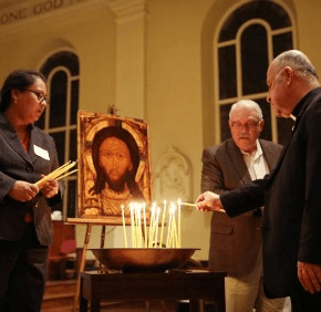 Bishop Yousif B. Habash of Our Lady of Deliverance Syriac Catholic Diocese of the U.S. and Canada, which is based in Newark, New Jersey, was one of the bishops who attended. When his homeland of Iraq was called in the litany of nations, he walked up and placed a lit candle in the cauldron.
