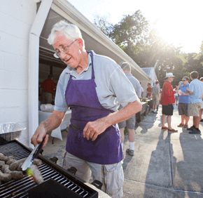 Archbishop William E. Lori lead the men in the recitation of the Evening Prayers before Father Michael Carrion and Father Patrick Carrion served up a selection of international grilled sausages and homemade Maryland crab soup. The men also recognized the 10-year anniversary of Father Michael DeAscanis’ ordination, giving him an icon of The Good Shepherd as a gift.