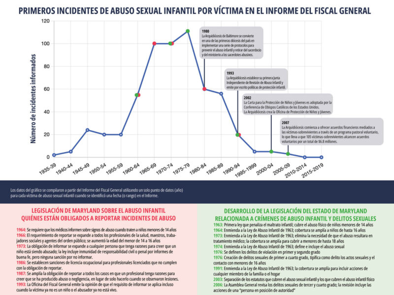 Como discípulos de Cristo sólo podemos ver el informe del Fiscal General de Maryland—Abuso del clero en Maryland: Informe sobre la investigación de la Arquidiócesis de Baltimore—como un nuevo y desgarrador recordatorio de una época trágica y vergonzosa. El informe detalla casos de abuso sexual infantil cometidos por representantes de la Iglesia, que ocurrieron en su mayor parte desde la década de 1940 hasta principios de la de 1990, así como la forma en que la Arquidiócesis respondió a los informes de abuso.
