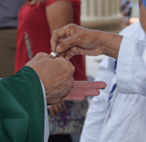 After the Mass, the sisters greeted well-wishers and distributed holy medals with Mother Teresa’s image and the words, “Pray for us,” on the reverse, kissing each one first. Mother Teresa used to hand out Miraculous Medals in the same way during her lifetime.